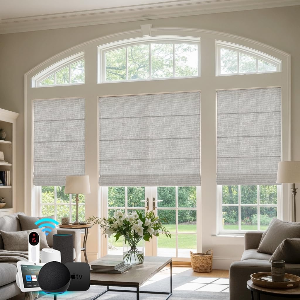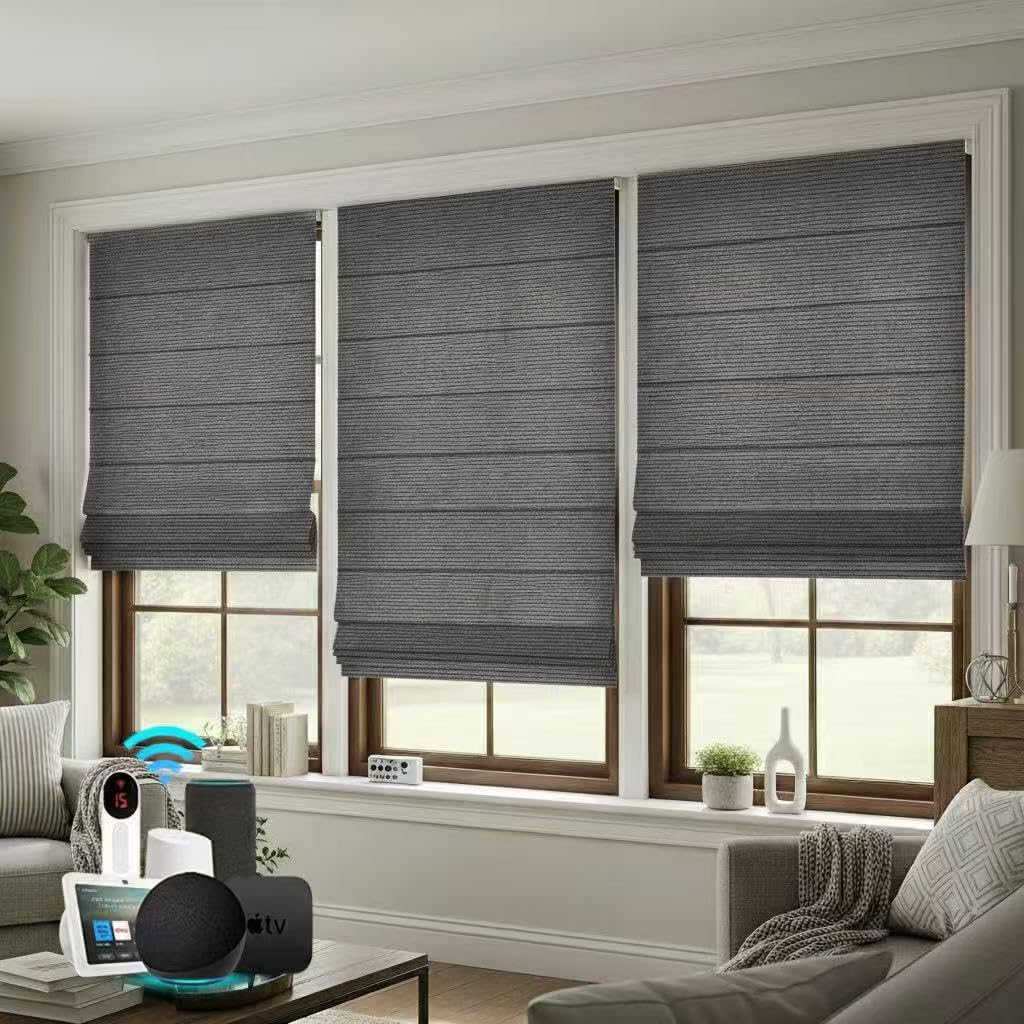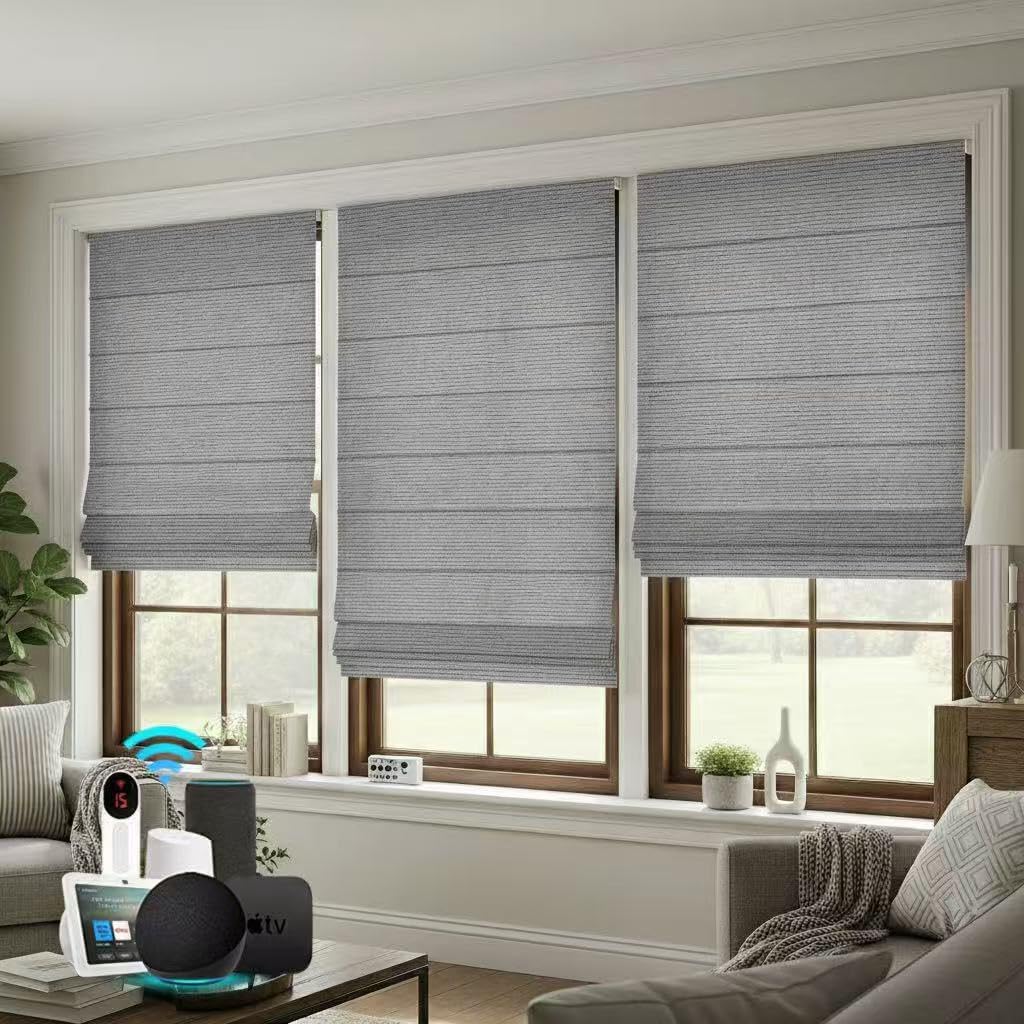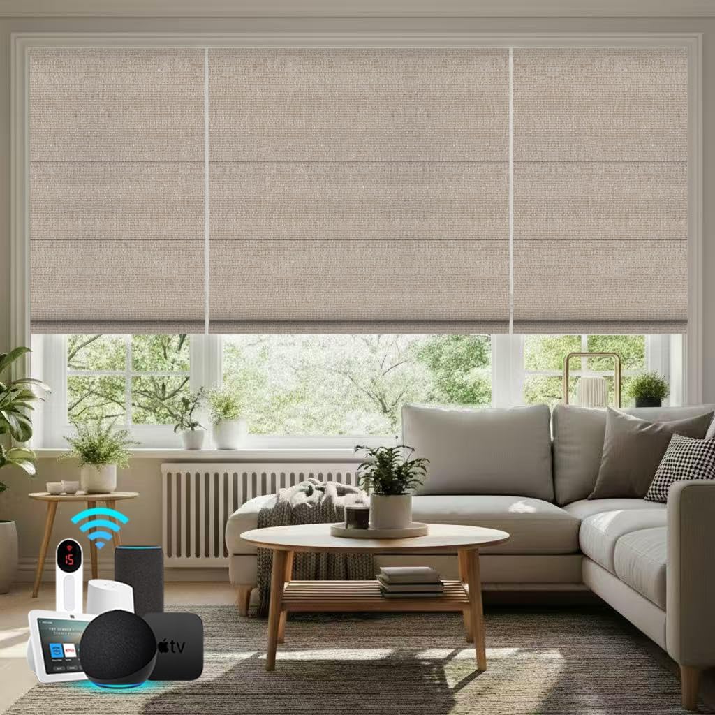 Bringnox Motorized Blinds,Roman Shades for Windows,with Alexa,Google, Custom Roman Shades with App,Voice Control (Blackout Linen Stone-219)